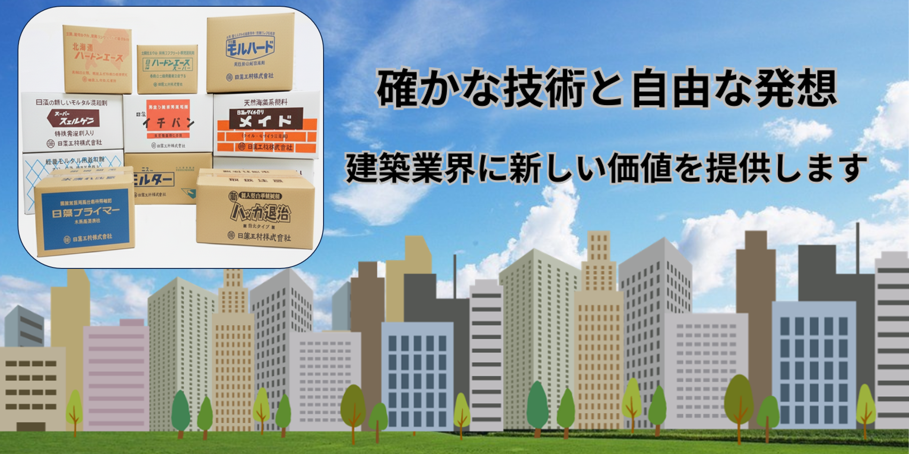 日藻工材株式会社は、1970年に建築用海藻糊料、化学糊料の製造並びに、建築用左官資材の販売を目的として設立発足しました。設立以来「利益なき企業の発展はあり得ない」を基本方針に創意工夫による独自のセメント用混和剤の開発・製造・販売を通してお客様と社会に貢献しています。
